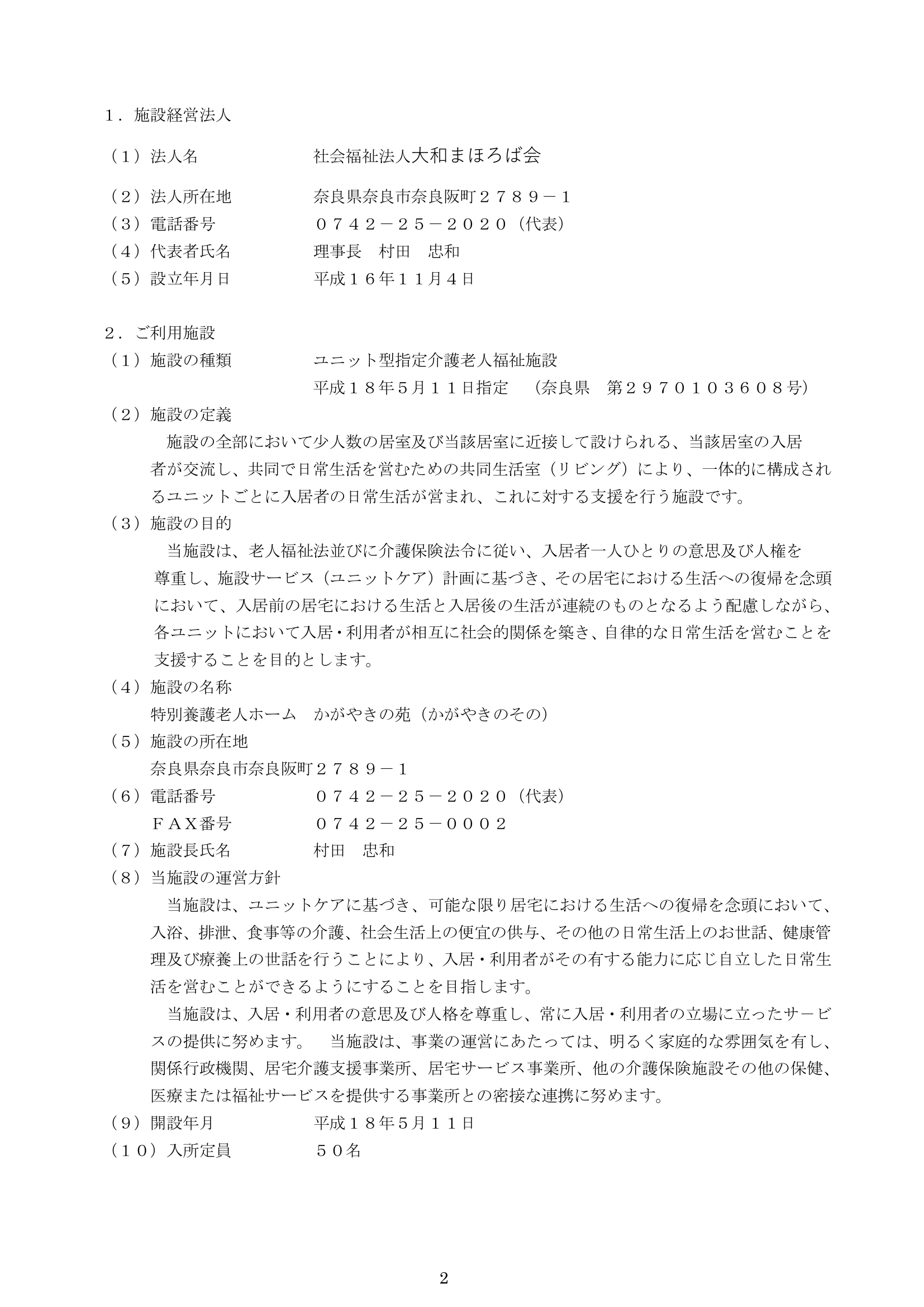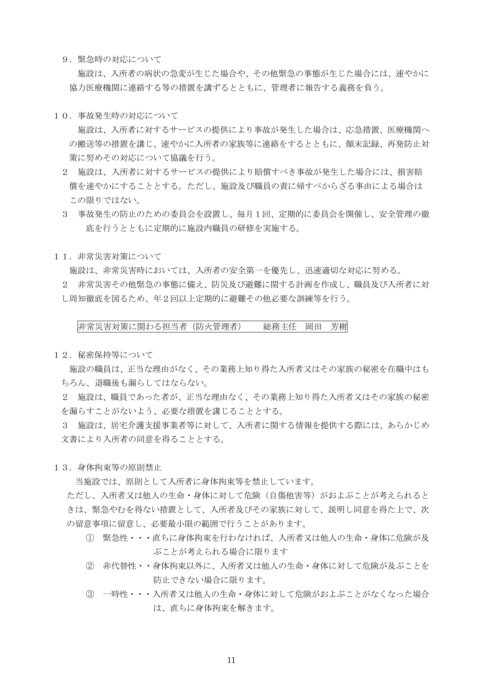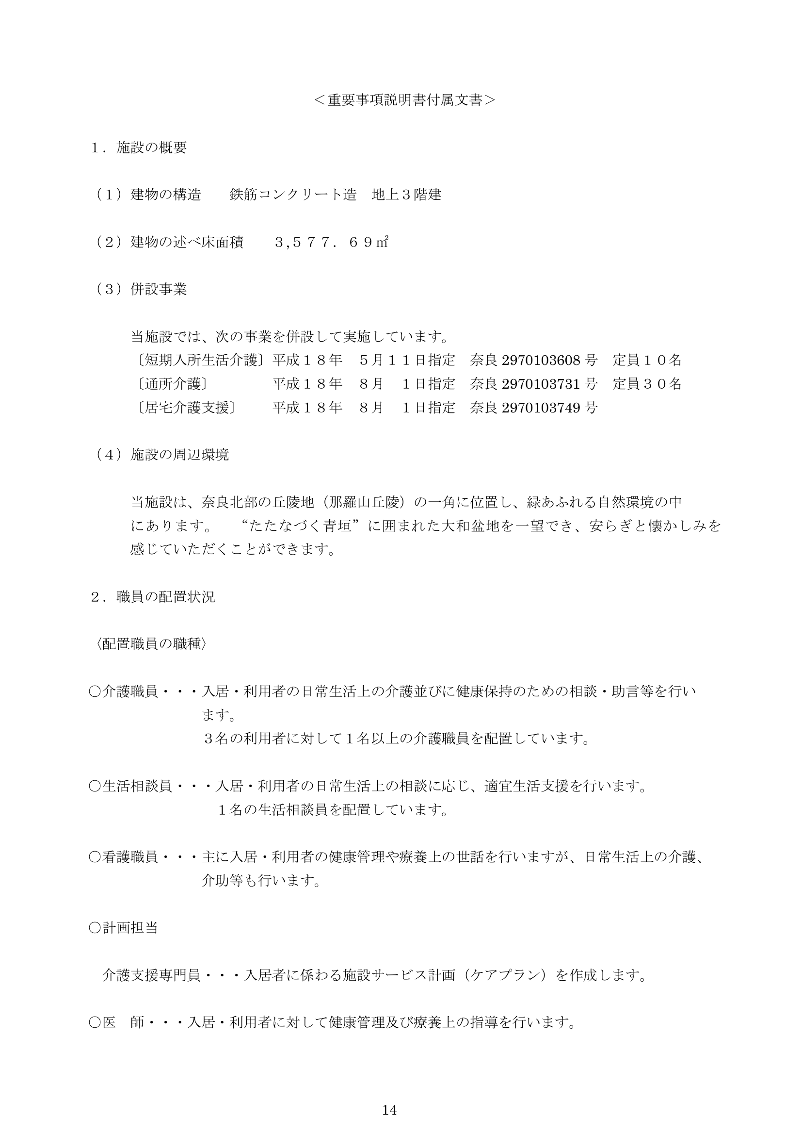 特養(運営規定・重要事項)