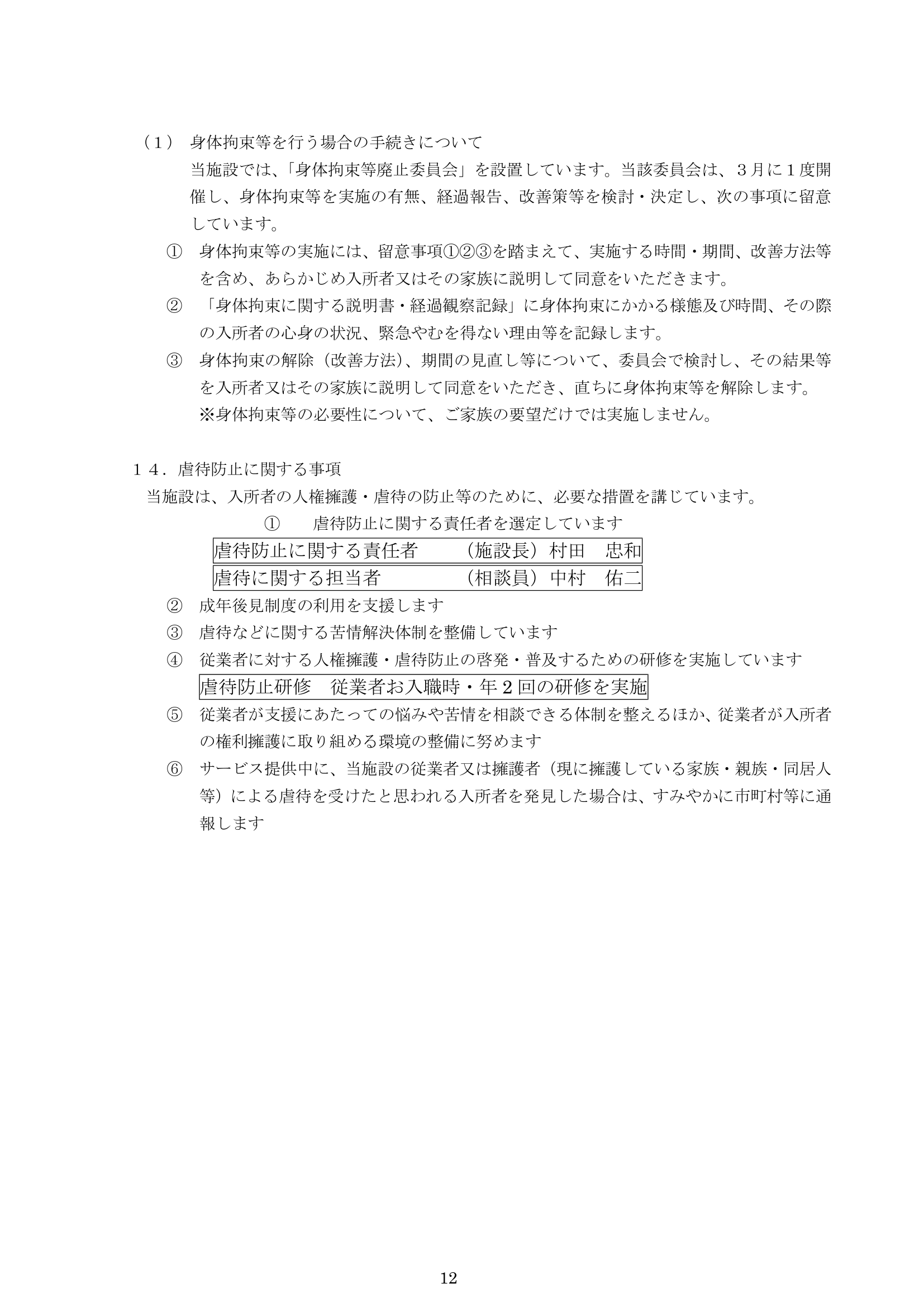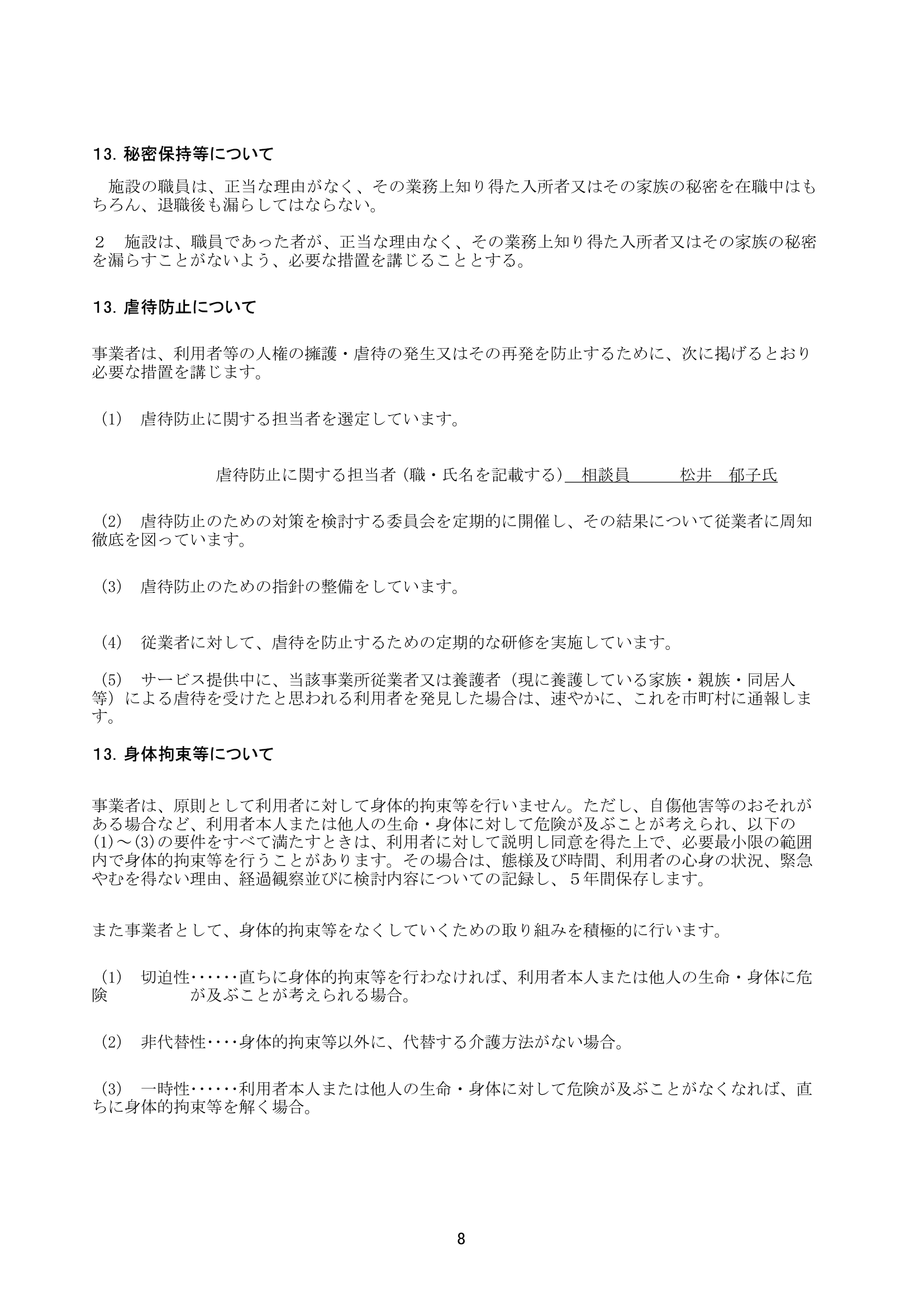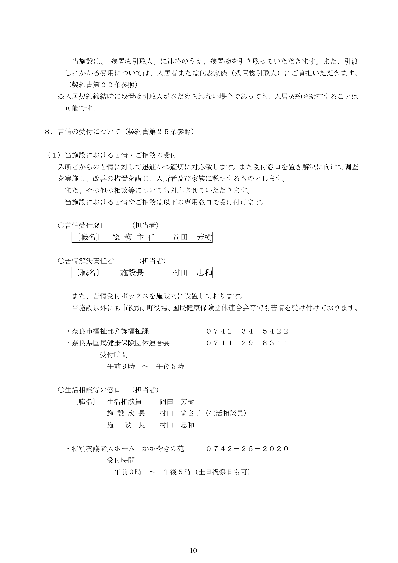 特養(運営規定・重要事項)