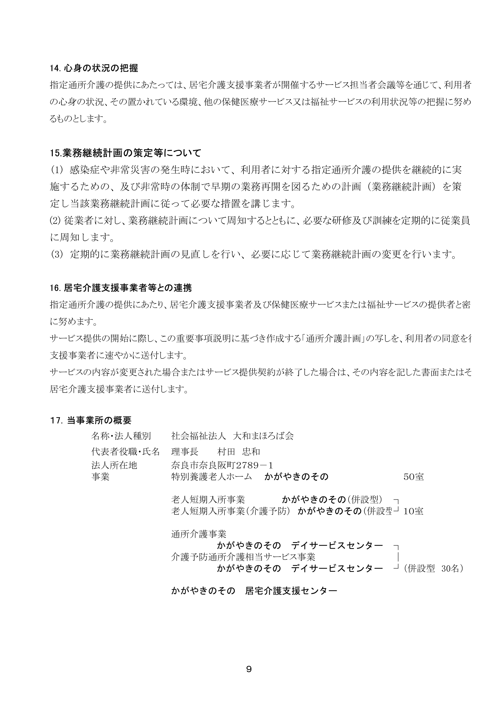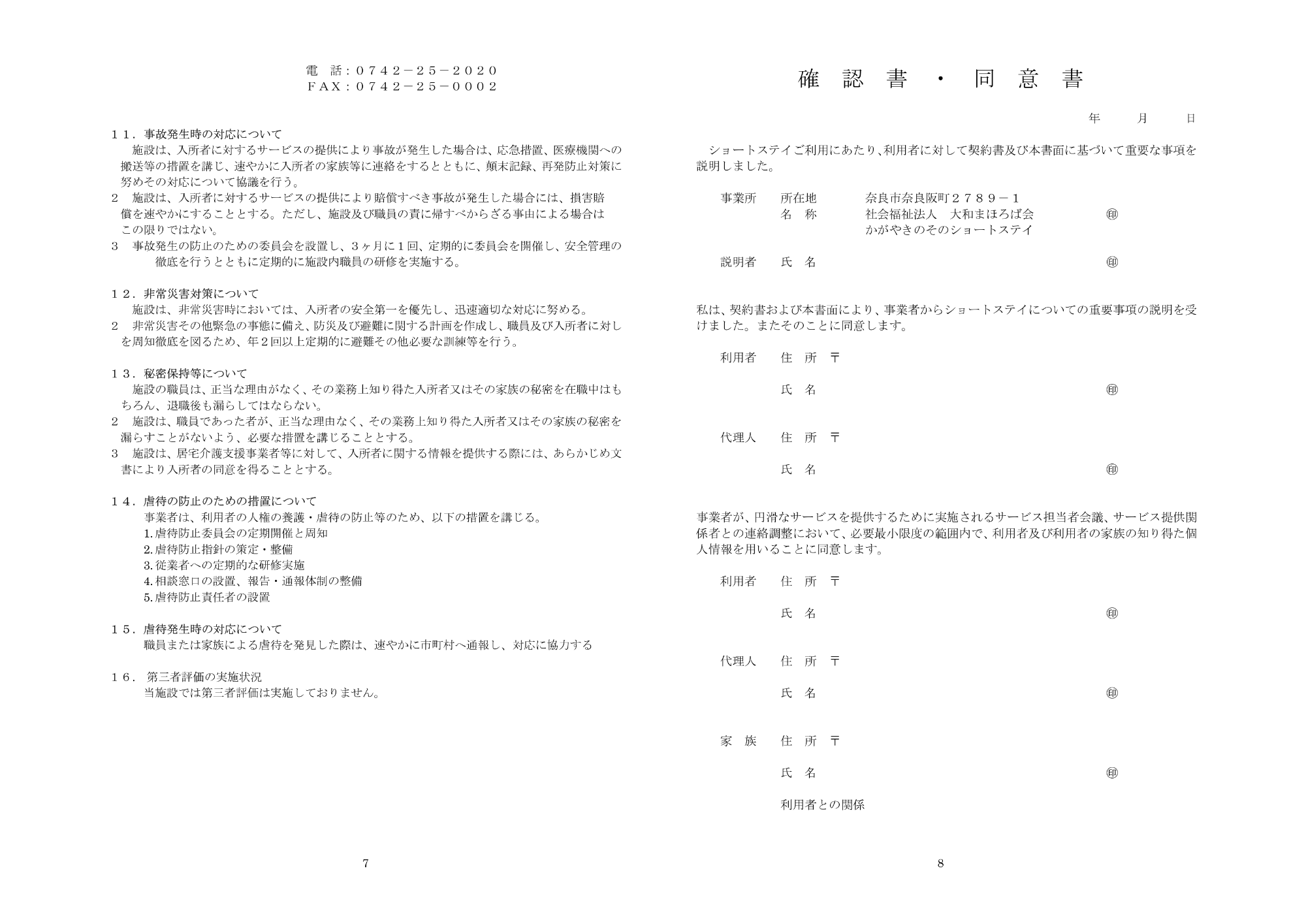 短期入所生活介護(運営規定・重要事項)