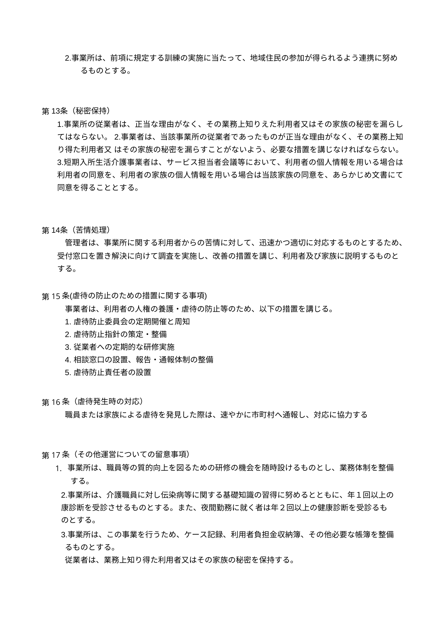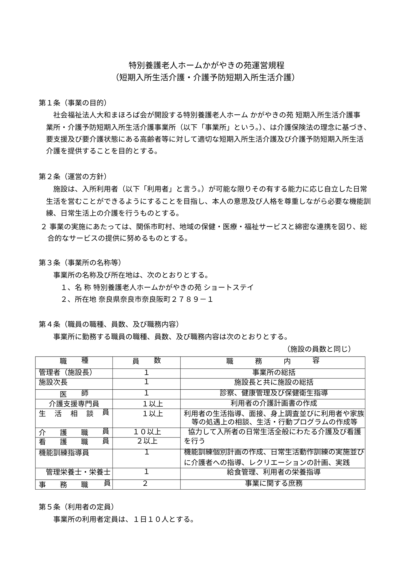 短期入所生活介護(運営規定)
