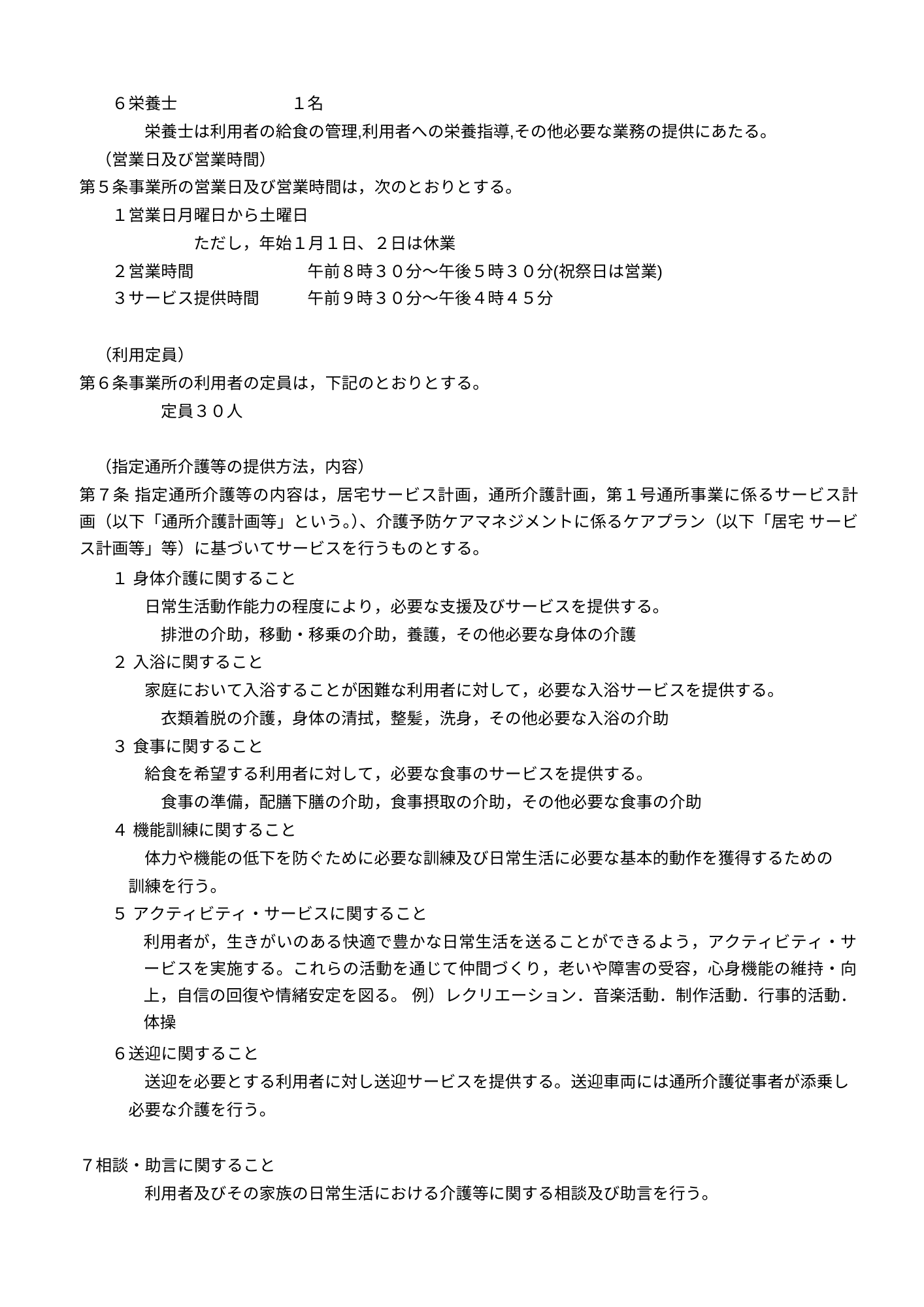 通所介護(運営規定)